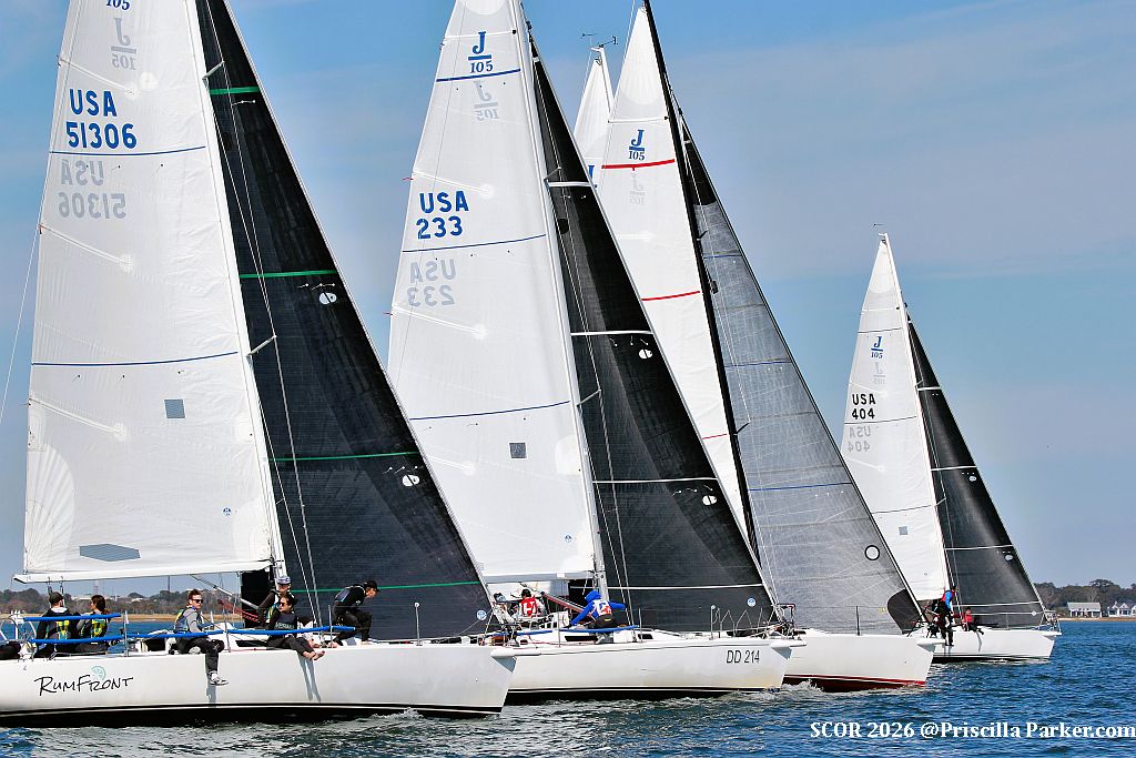 Day 1: The opening day of the 2026 Southern Collegiate Offshore Regatta brought a packed schedule of racing for every fleet. Teams in the J/105 and Sportboat divisions completed five races each, while the J/22 fleet sailed four. The Race Committee positioned the course southeast of Middle Ground, where Charleston Harbor offered prime conditions, including a consistent easterly breeze of 6–10 knots.
