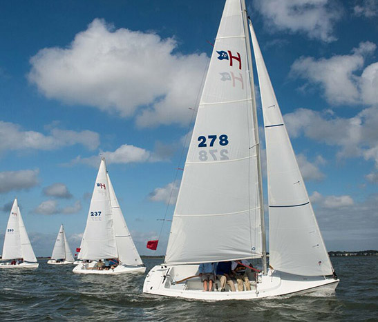The SCYC Jr. Program has as a huge fleet of keel boats we use to keep sailors participating thought out the year. We have four Harbor 20s, a J22, a J24, a J70, and a J100 for sailor to participate in PHRF and fleet racing. The Harbor 20s are a great fleet of equal boats with 12 inside Windmill Harbour. The local racers include former Olympian Chuck Millican, leaders of fortune 500 companies, and afternoon day sailors who compete every Wednesday afternoon like they are campaigning to bring the Cup back to the US. The juniors are able to use the club boats, which are maintained to make them as competitive as the privately owned boats making skill to be the determining factor of winning. Our Harbor 20 fleet races more than 200 races a year. Our Junior teams this past year competed at the J24 North American Championship on Fortitude as an all Junior team. We have had a Junior team competed every year for the last four years at Charleston Race Week on Vortex (J70). This boat was donated to Hilton Head Preparatory school by Vortex racing a semi pro sailing team that operates out of Hampton Yacht Club in Virginia. This boat is every juniors dream as it is a rocket ship with a crew of 5 sailors holding on. It also allows our juniors to see what is beyond the dinghy fleets. We are working on getting the J100 outfitted for offshore racing on the Charleston Offshore Sailing Association (CORA) series and add another facet to the SCYC adult and junior offerings.