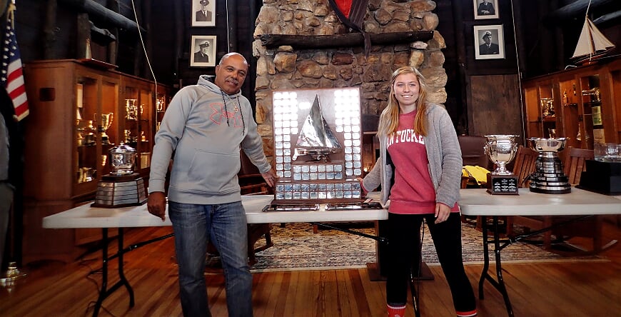 A Class owned Comet was chartered to the championship host Lake Hopatcong Yacht Club Commodore Brian Murphy and son Teddy Murphy. Optimist sailor Teddy was skippering the Comet and showed the fleet that he has the “right stuff” for the class, finishing most races just behind the lead pack. Teddy received the Court and Ginny Memorial Trophy for being the Top Youth Finisher.